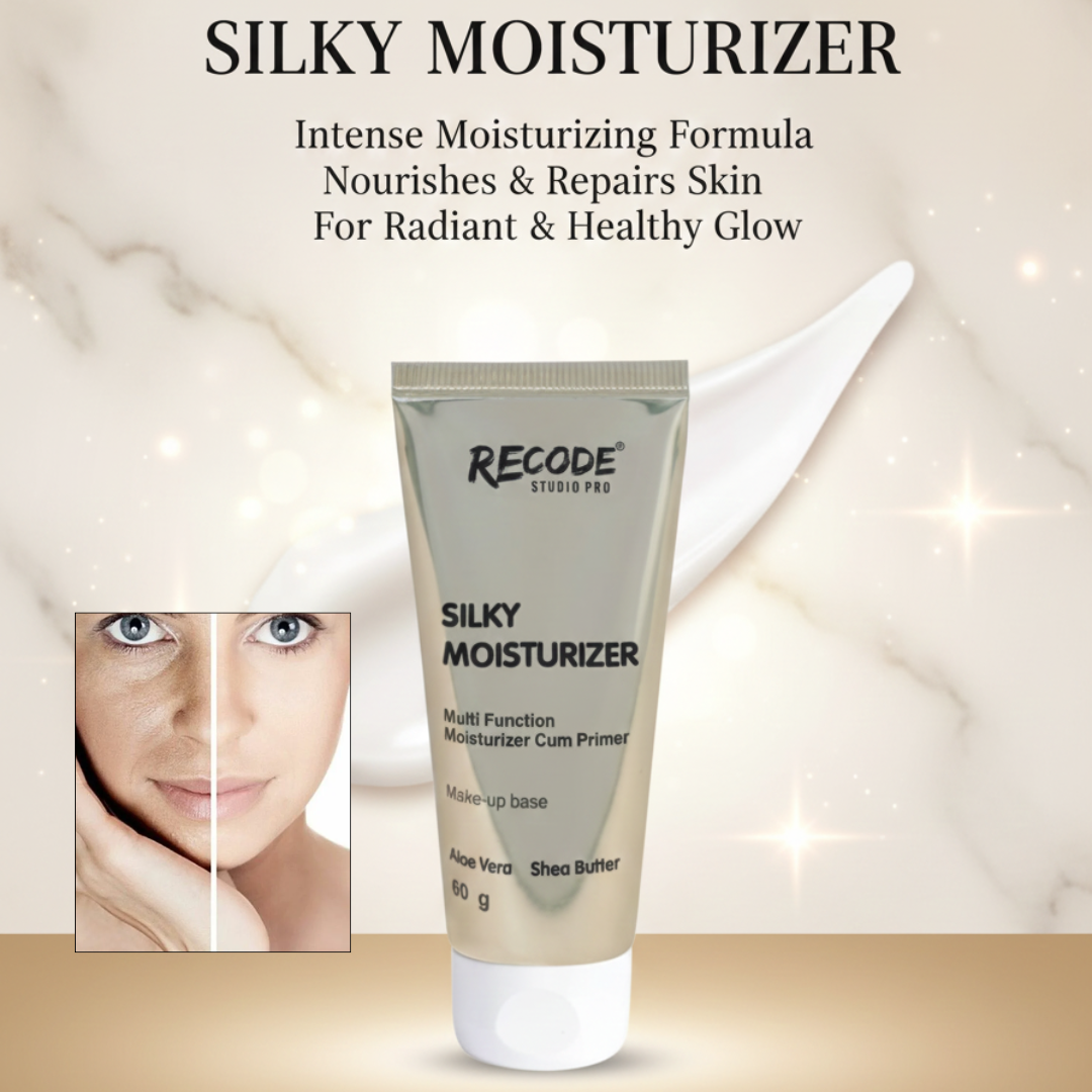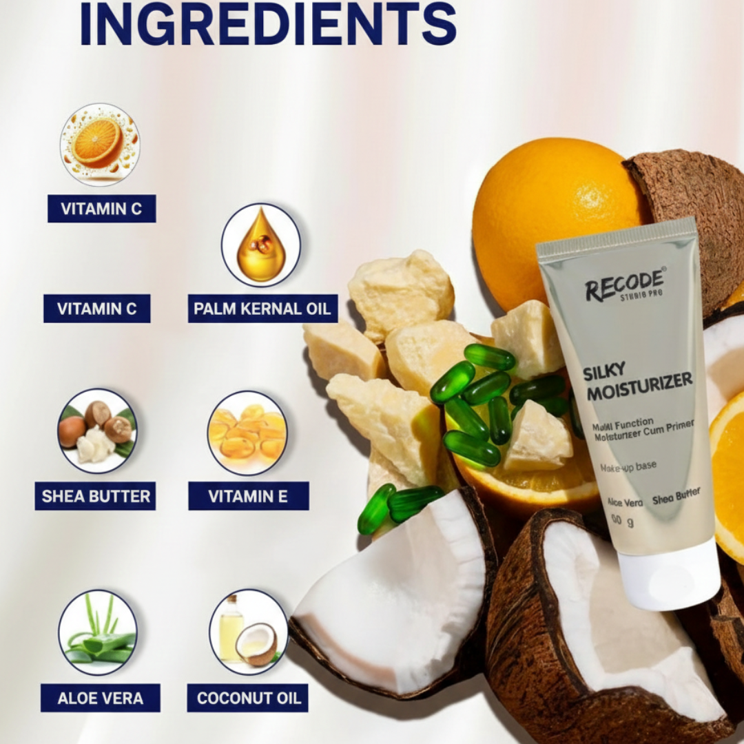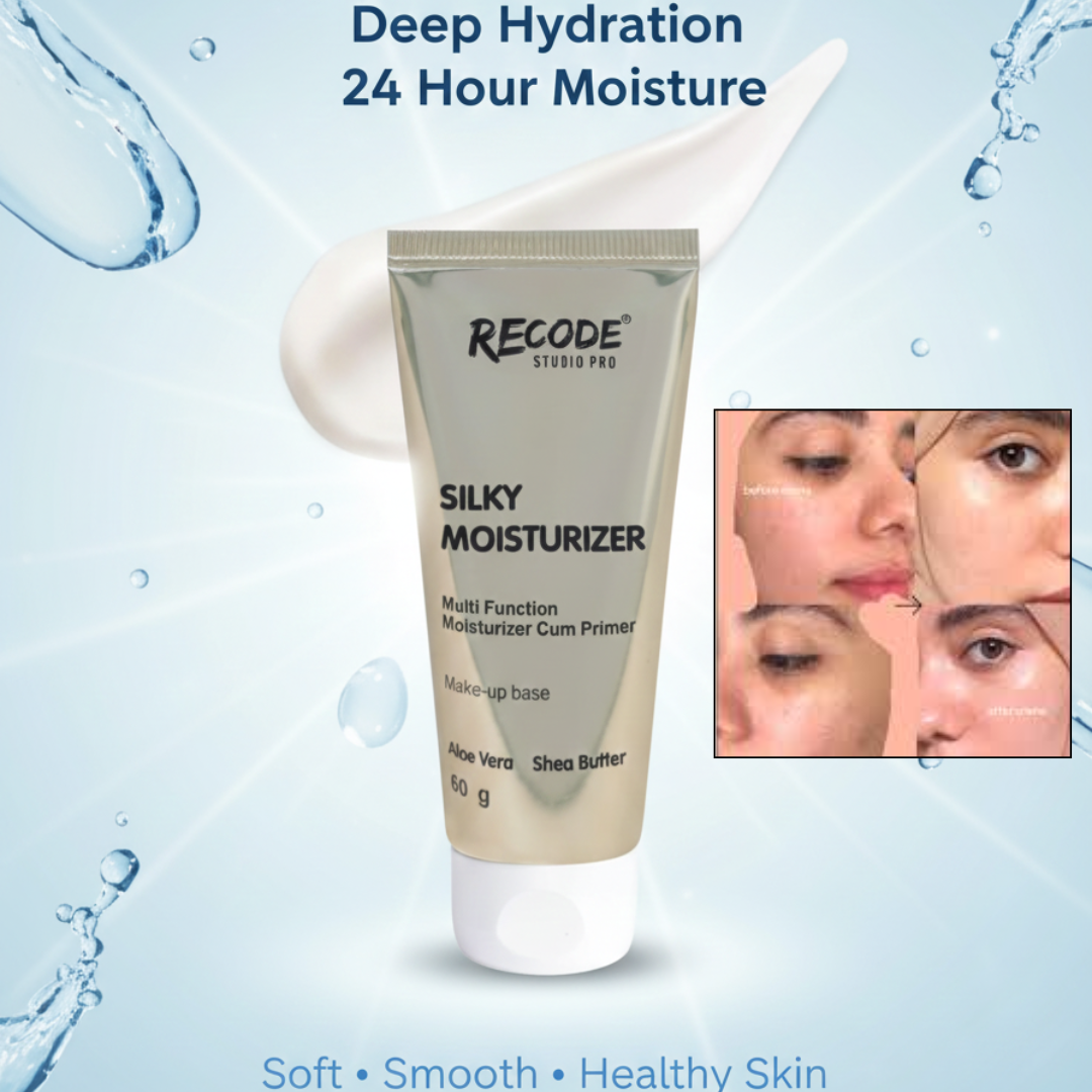 Get ready for a flawless, photo-ready base with the Recode Studio Pro Silky Moisturizer. This 2-in-1 moisturizer and primer is infused with Shea Butter, Vitamin C, Vitamin E, Aloe Vera, Coconut Oil, and Palm Kernel Oil to deliver deep, 24-hour hydration while creating a soft-focus, pore-blurring canvas for makeup. Loved by 97% of makeup artists, this silky formula nourishes, repairs, and strengthens the skin barrier—leaving your complexion radiant, smooth, and prepped for long-lasting, seamless makeup application.